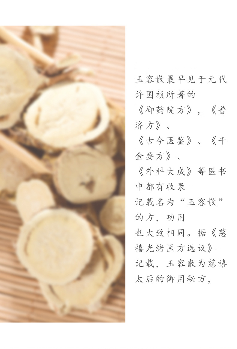 - 白僵蚕、川芎:疏通毛孔,淡化痘印