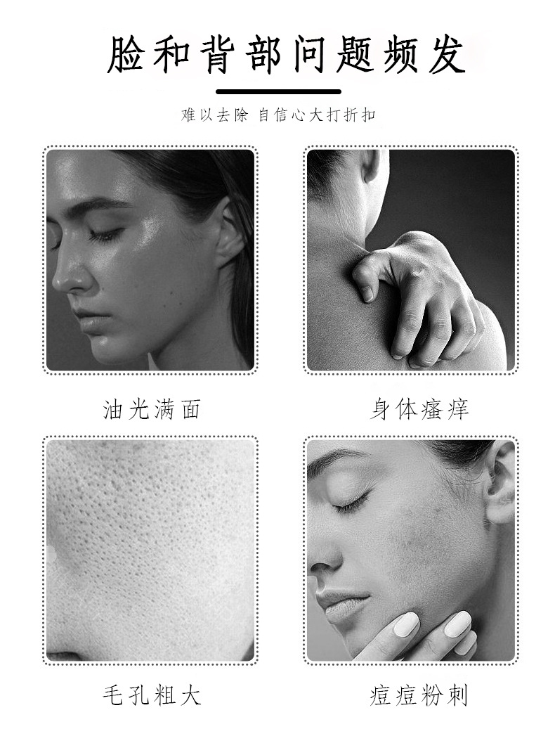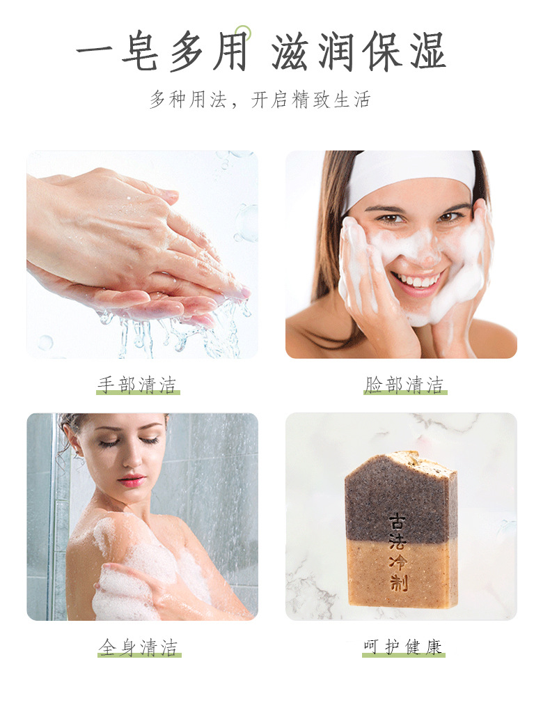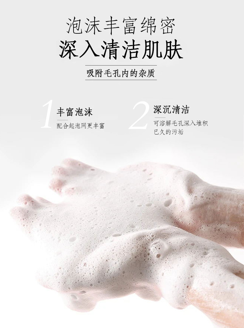 - 直接用皂体按摩身体易出油、长痘部位(如后背、胸前),冲洗后肌肤清爽不干燥