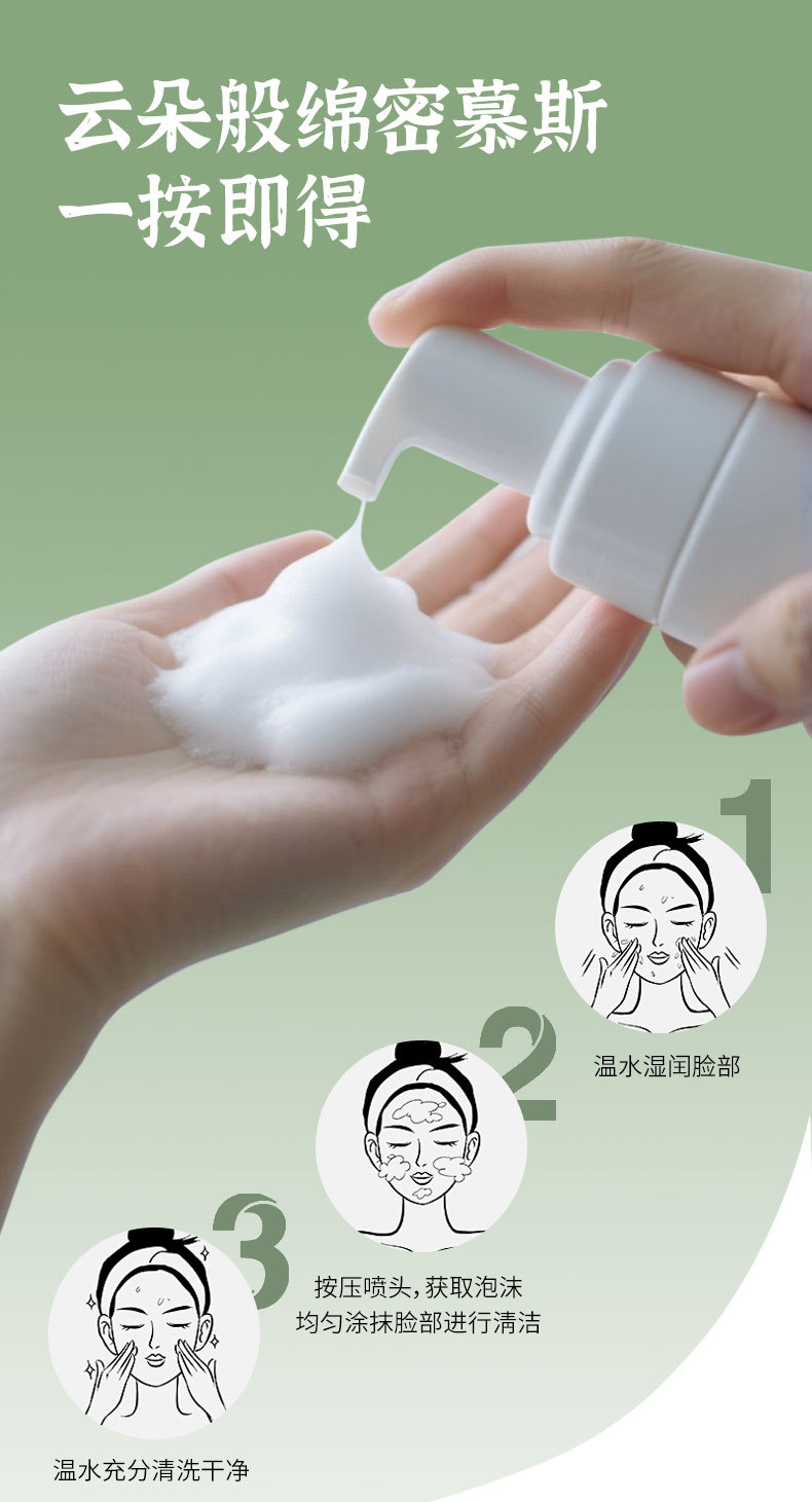✅ 慕斯泡沫质地:按压即出绵密云朵泡沫☁️,无需手动起泡,懒人也能轻松拥有仪式感洁面体验💆♀️