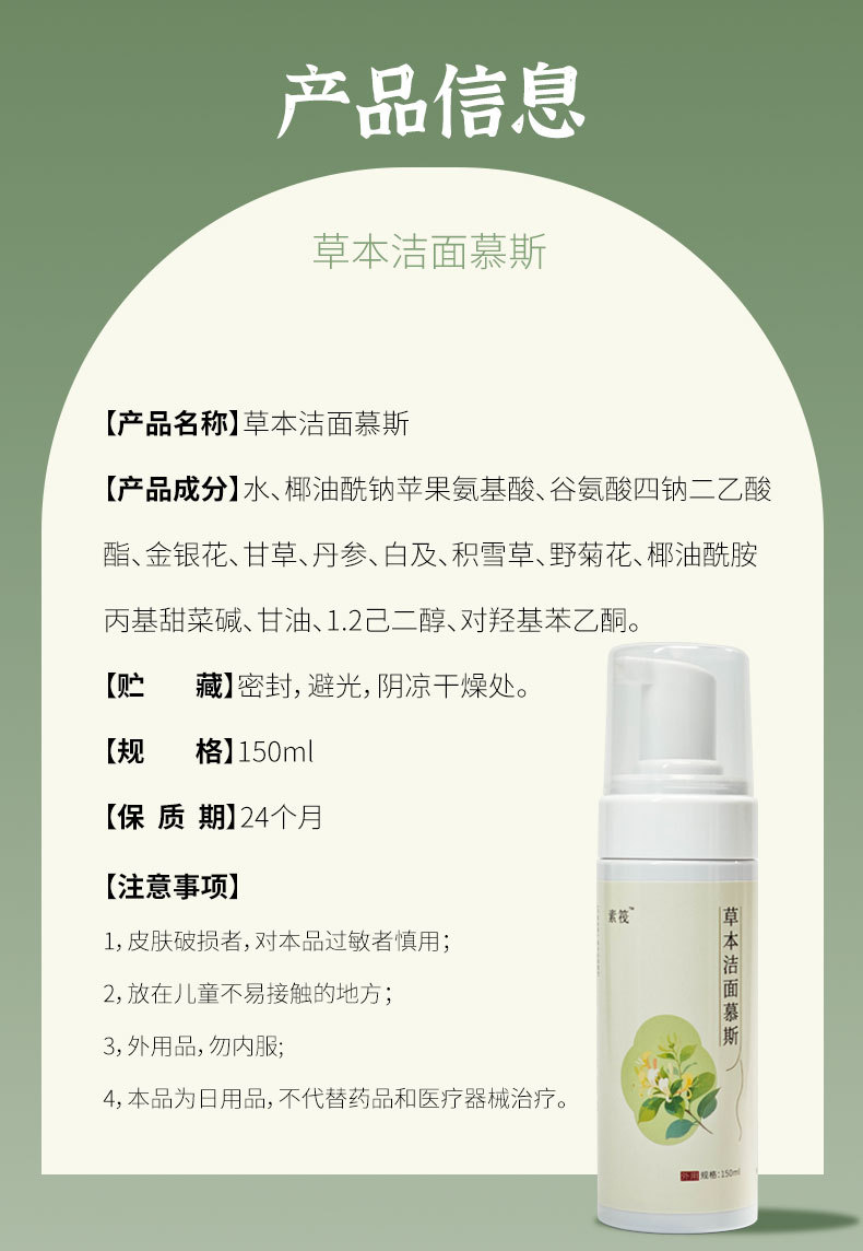 于是,她决心把家族传承的草本养护智慧,融入现代温和的氨基酸洁面技术里🔬。团队走访了河南封丘金银花基地、安徽亳州甘草产地🌱,只采当季道地草本,用“浸泡-熬煮-过滤-密封”的古法工艺慢熬出植萃原液,再复配亲肤的氨基酸表活,最终做出了这瓶既能温和清洁,又能养护肌肤的洁面慕斯。我们相信:好的洁面,不止是洗去污垢,更是给肌肤一份温柔的养护承诺💖