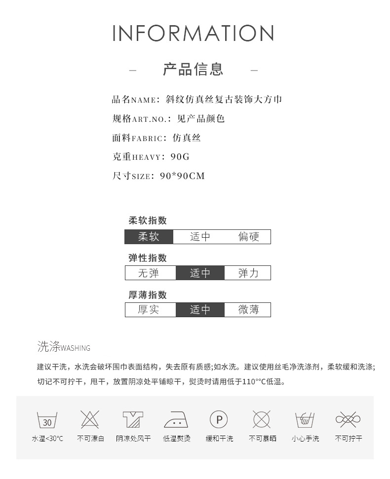 边缘采用精细包边处理,无毛边、不脱线,耐用且易于打理。高品质仿真丝面料,不易起球,反复洗涤仍保持如新1。